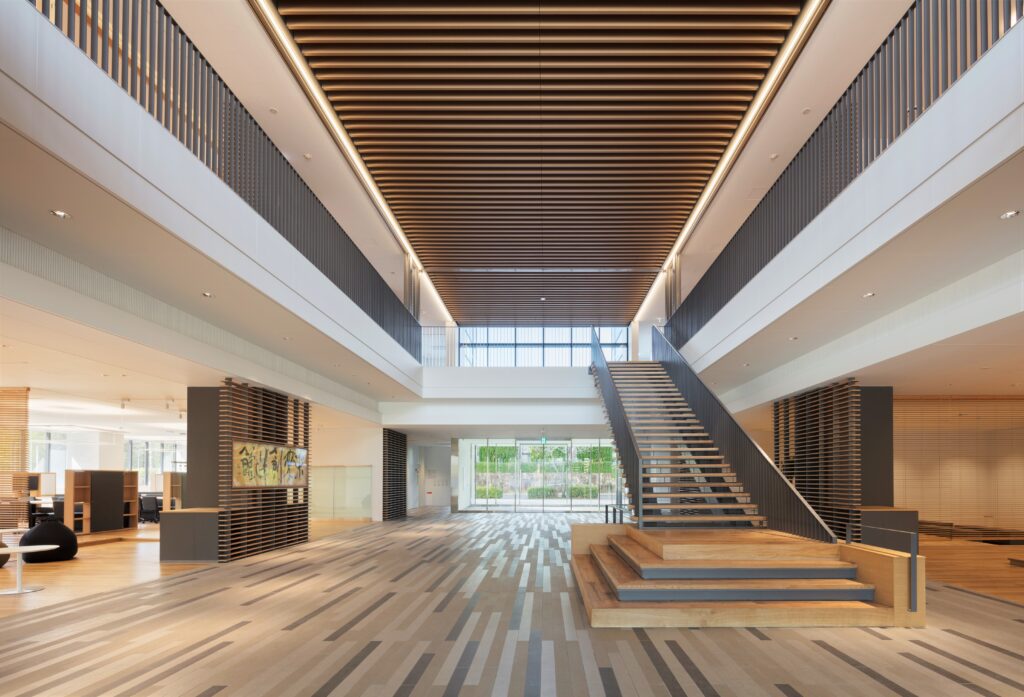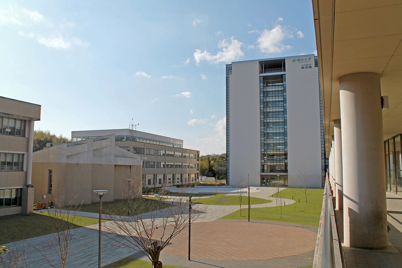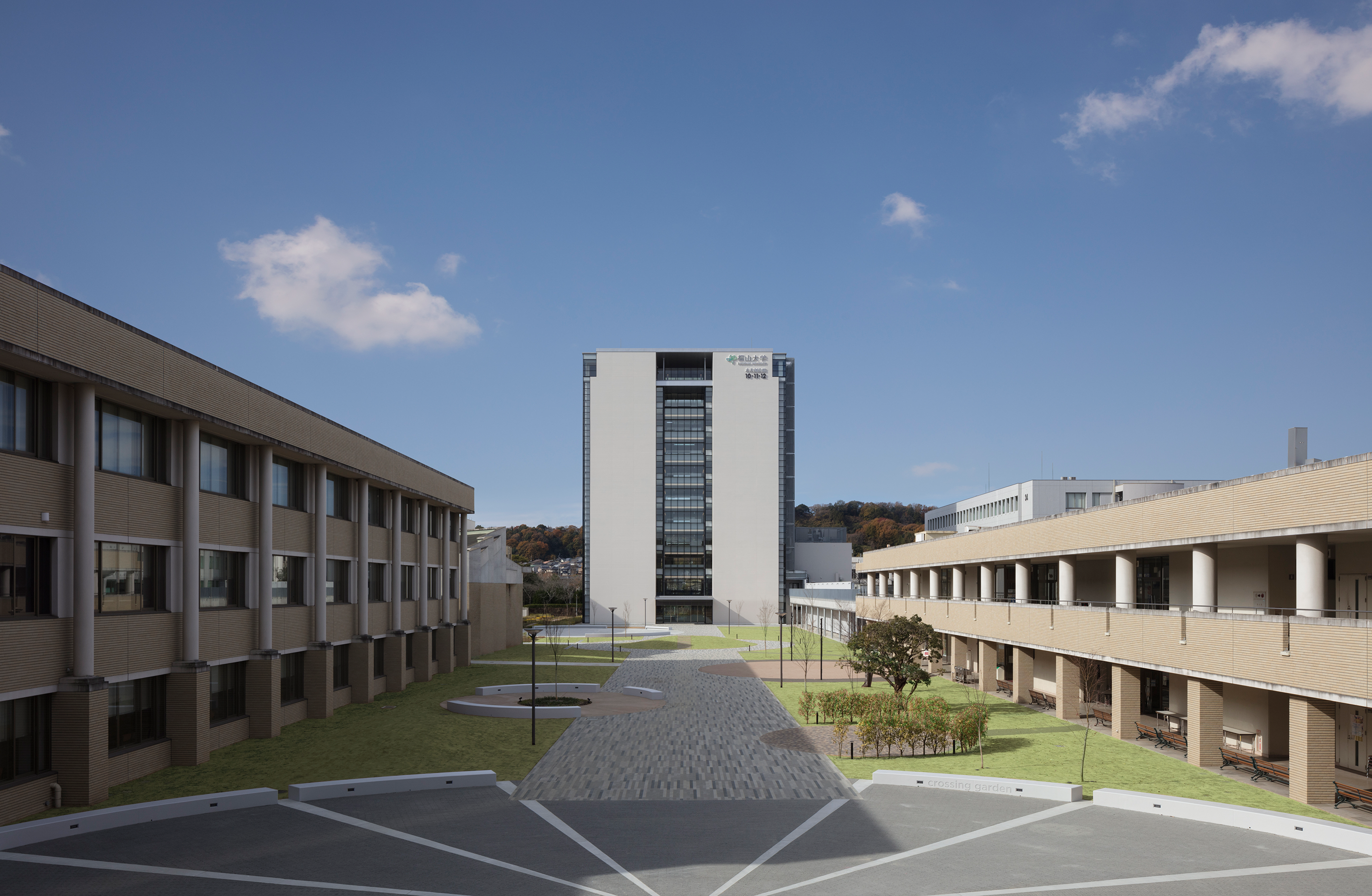 5学部すべての学生が集う未来創造館へのアプローチである1号館からの軸線上に性格の異なる5つの活動の場を重ね合わせることで、福山大学の多様な学生達が集うキャンパスの骨格となる『CROSSING GARDEN』を実現しています。