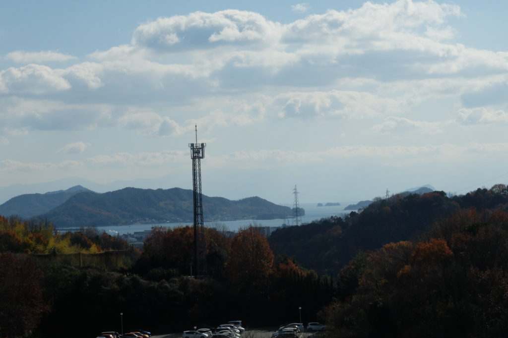 皆さんが見られた11階のクロッシングカフェからの展望です。奥に瀬戸内海が望めます。