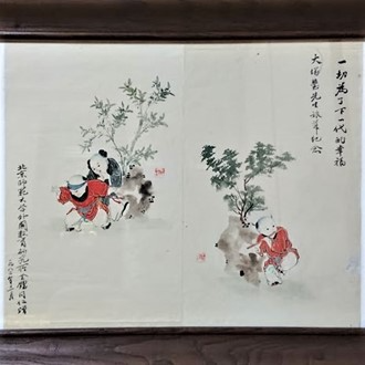 というわけで、記念すべき初回を飾るのにふさわしいテーマはと、暫し思いを巡らし、蘭学医の杉田玄白よろしく「短信事始」と表題を取り敢えず書いてみました。しかし、肝心の中身についてはなかなか良いアイデアが浮かばず、パソコンのキーボードに乗せた手は一向に動きません。そんな時、ふと我が部屋に掛かった一幅の中国画が目に飛び込みました。両側の髪の毛だけを残したヘヤースタイルの子ども達が遊びに興じる実に可愛らしい絵です。そこに書かれた言葉「一切為了下一代的幸福(すべては次世代の幸せのために)」こそ、この何十年か、私が教育の信条としてきたものです。そこで、私が担当する最初の学長短信にそのことについて書いておくことにしました。