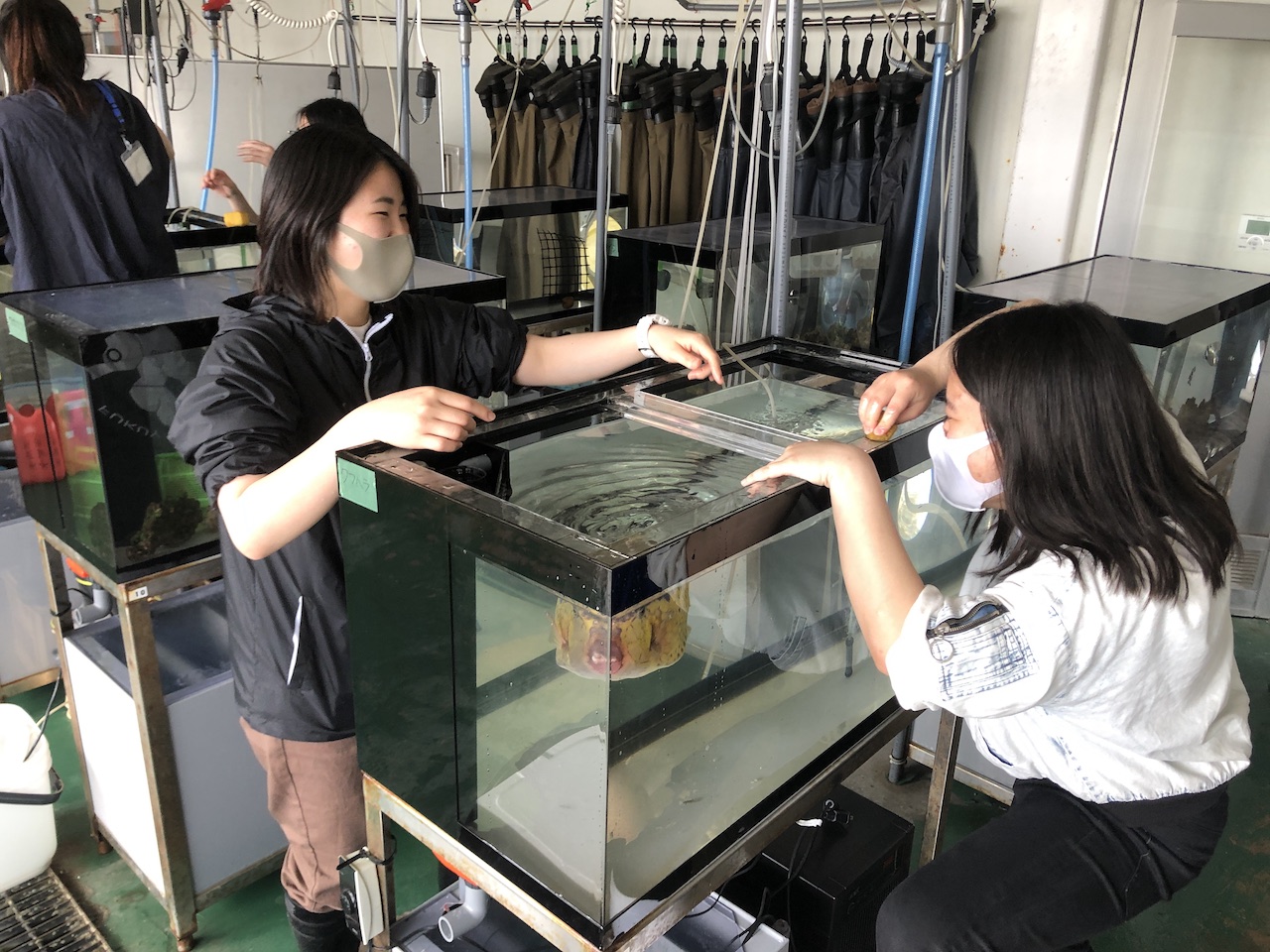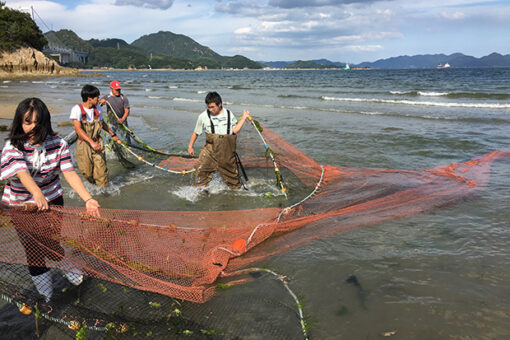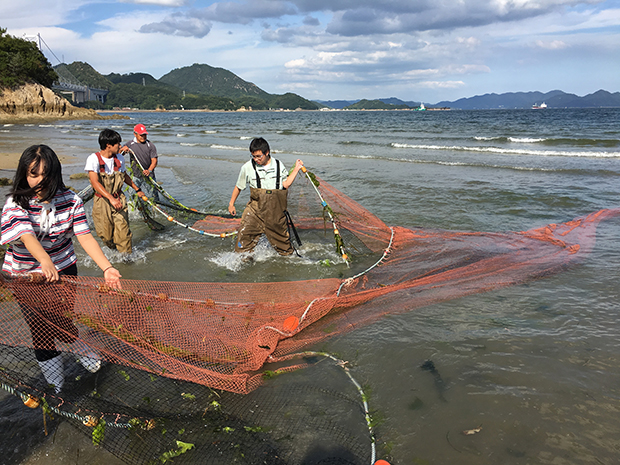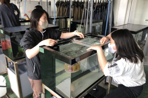 さらに、「水産資源培養学研究室」と「水族生態遺伝学研究室」では、キャンパスの目の前に広がる瀬戸内海をフィールドとして、里海の沿岸生態系や生物多様性などの研究を学生とともに行っています。