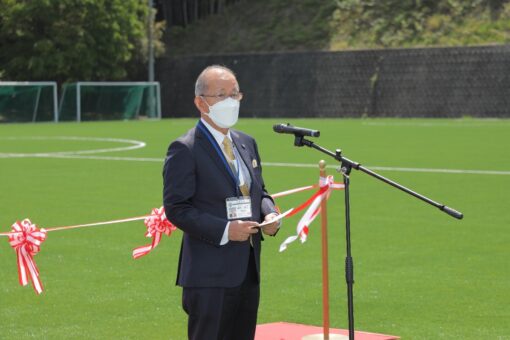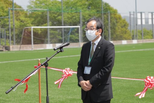 福山大学サッカー場人工芝改修工事完成による オープンセレモニーが執り行われました