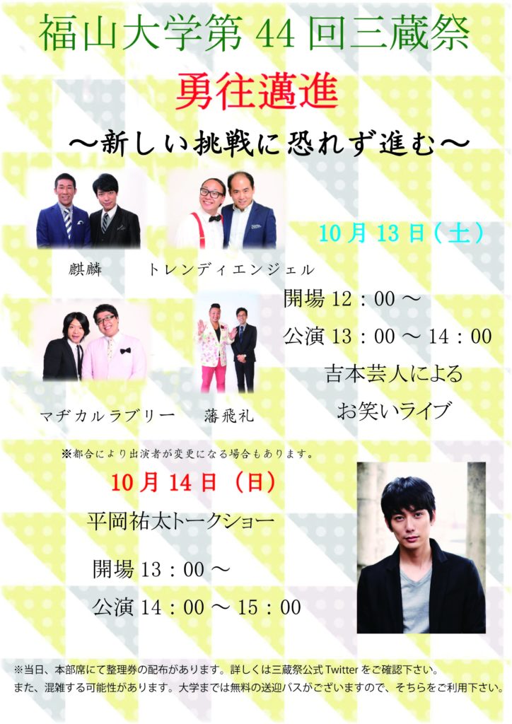 福山大学では第44回三蔵祭(学園祭)を開催いたします。