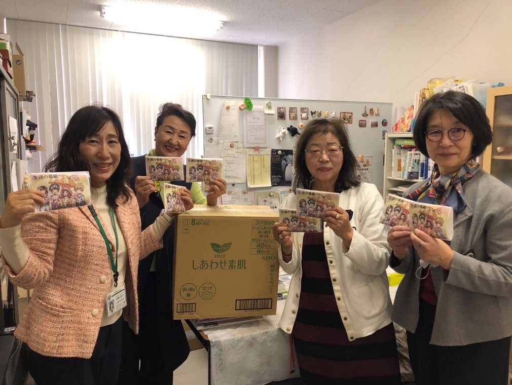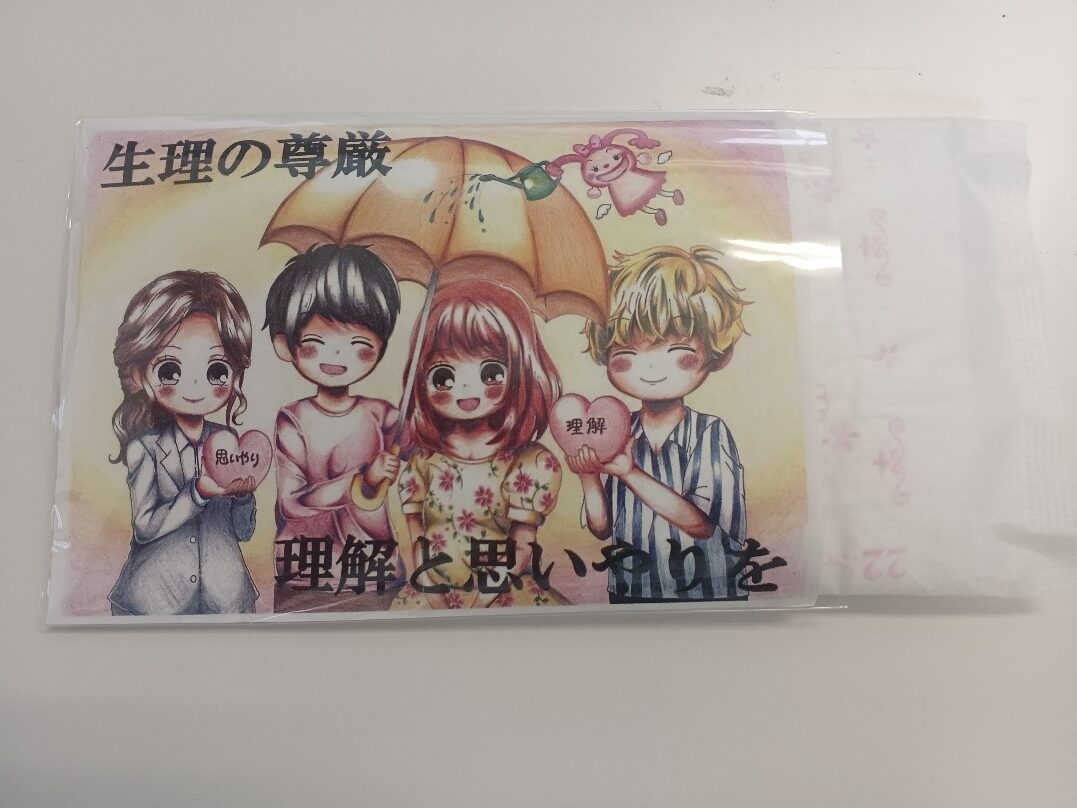 このような状況を鑑み、国や地方公共団体だけでなく、企業や学校、個人レベルで支援策が検討されています。国際ソロプチミスト福山においても、2022年度スポンサーシップ委員長である児玉明美様のご発案により、生理について理解を深める啓発活動を行なわれ、その一環として生理ナプキンを封入したリーフレットを本学に寄贈くださいました。