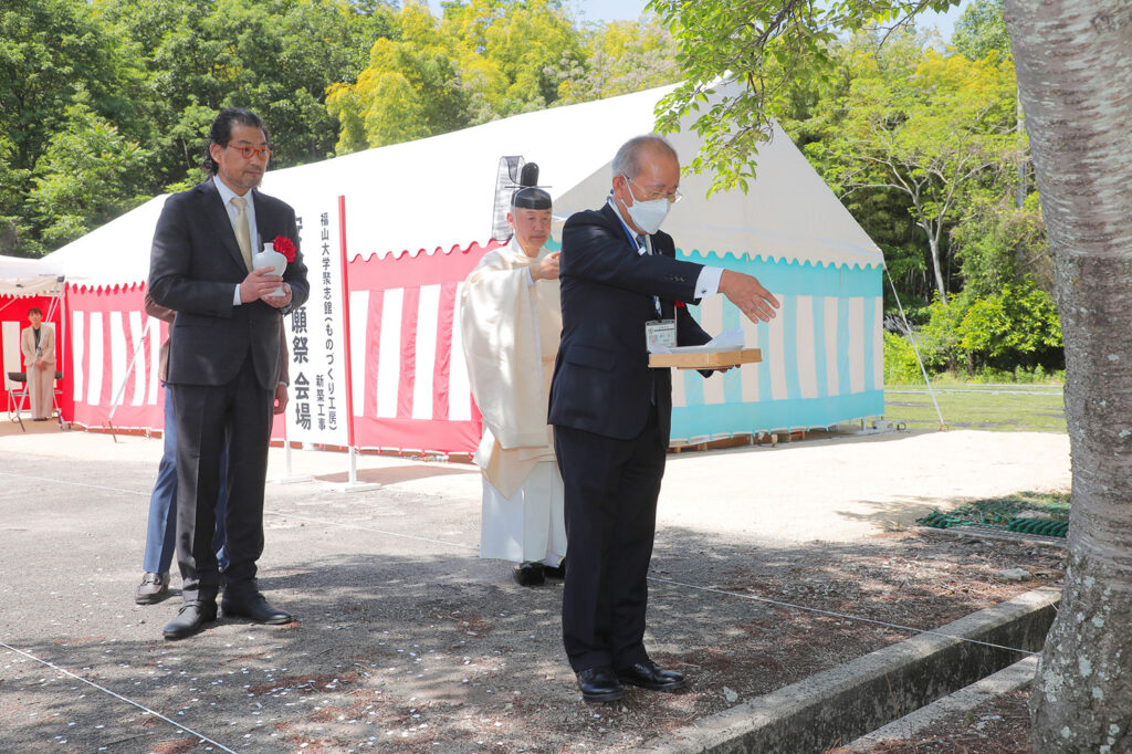 福山大学聚志館(ものづくり工房)の無事の完成が祈念されました。