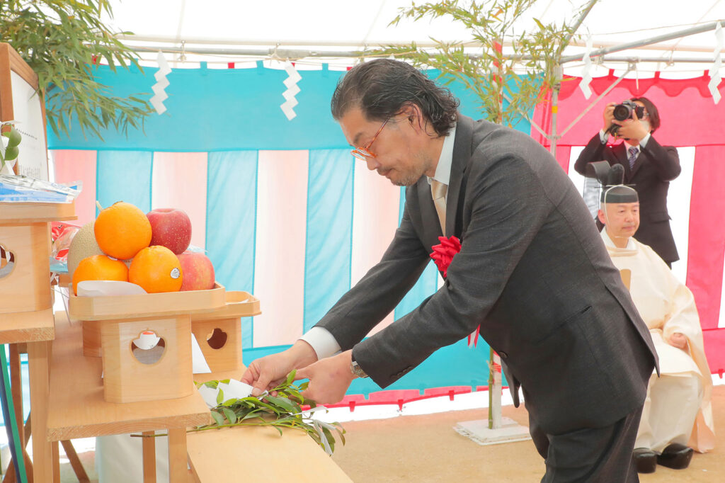 建設予定地四方に切麻、米、酒、塩を撒き、土地を祓い清めました。