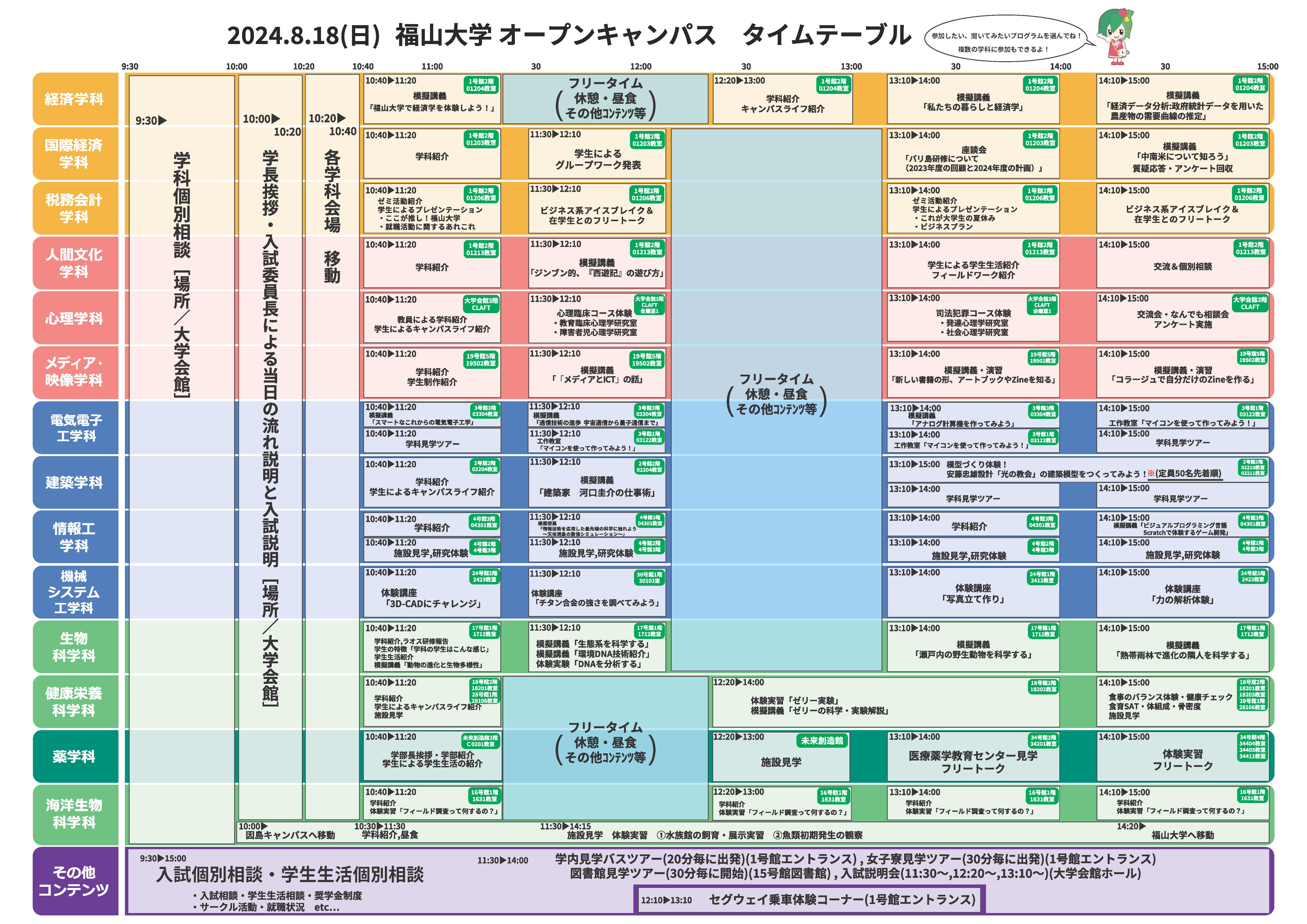 各コマごとに色々な学科を自由に参加していただけるコンテンツをご用意!
