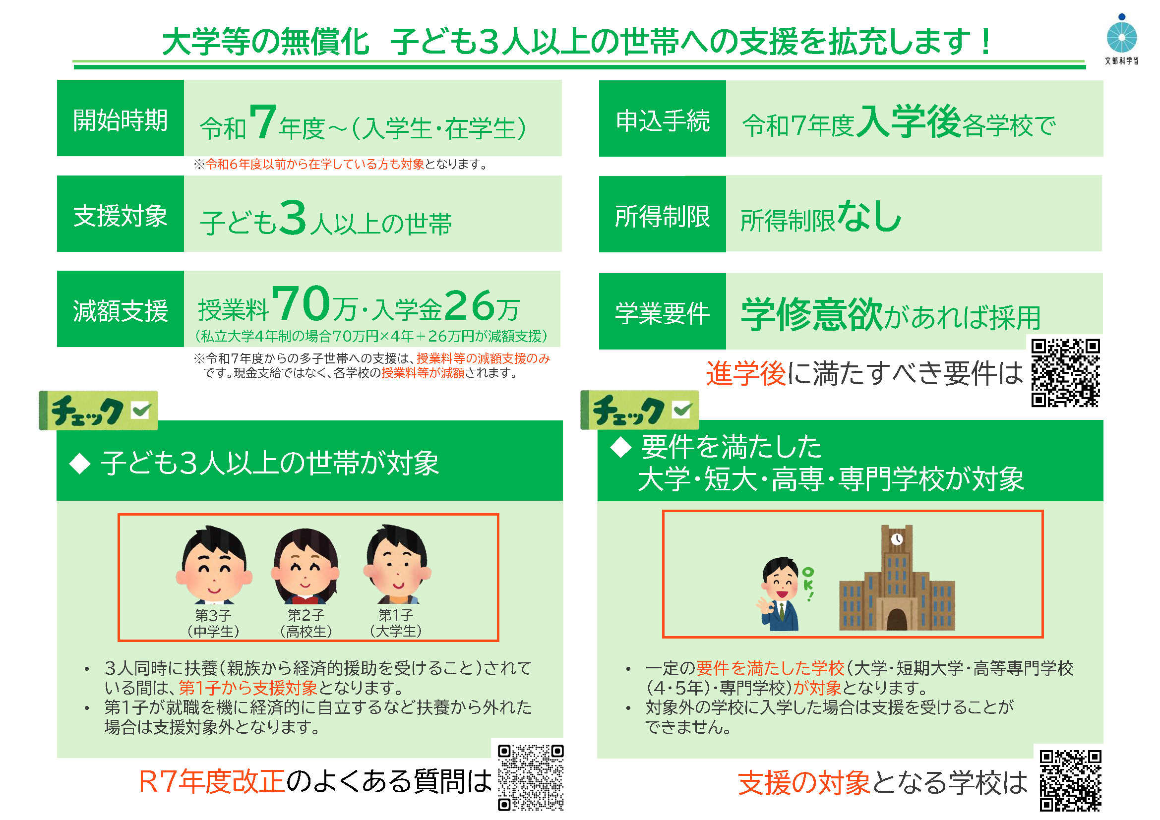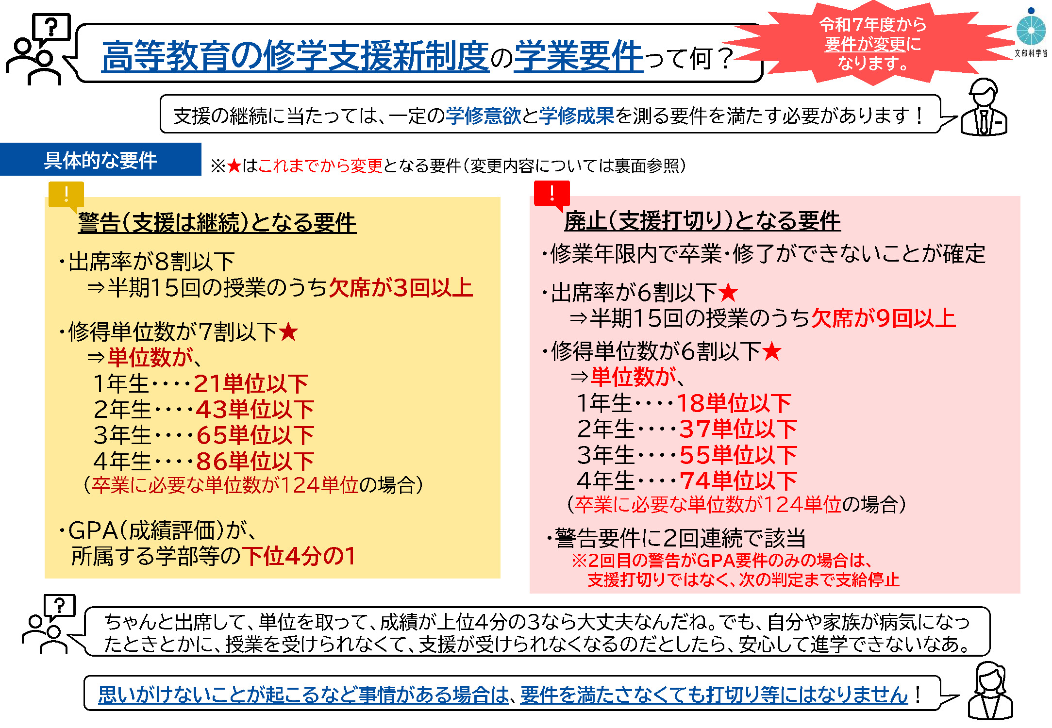 令和7年度以降における「高等教育の修学支援新制度」について【重要なお知らせ】