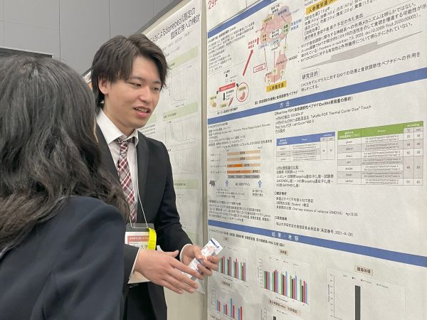 この未来創造館で学生たちが取り組んできた研究成果について、日本薬学会で発表した様子をご紹介します。