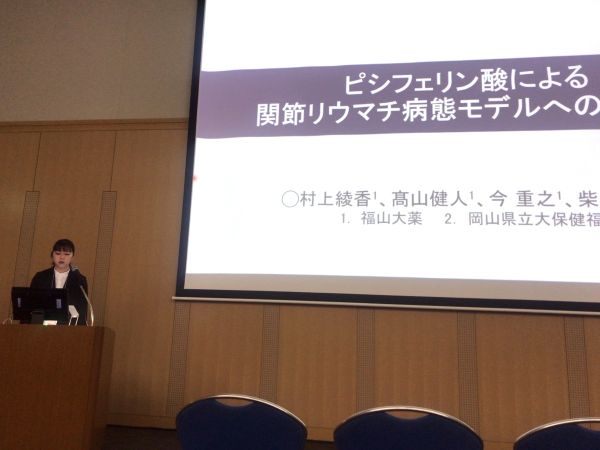 ■ ピシフェリン酸による関節リウマチ病態モデルへの有効性 [29-10-am04S] ○村上 綾香1、髙山 健人1、今 重之1、柴田 紗知2 (1. 福山大薬、2. 岡山県立大保健福祉)