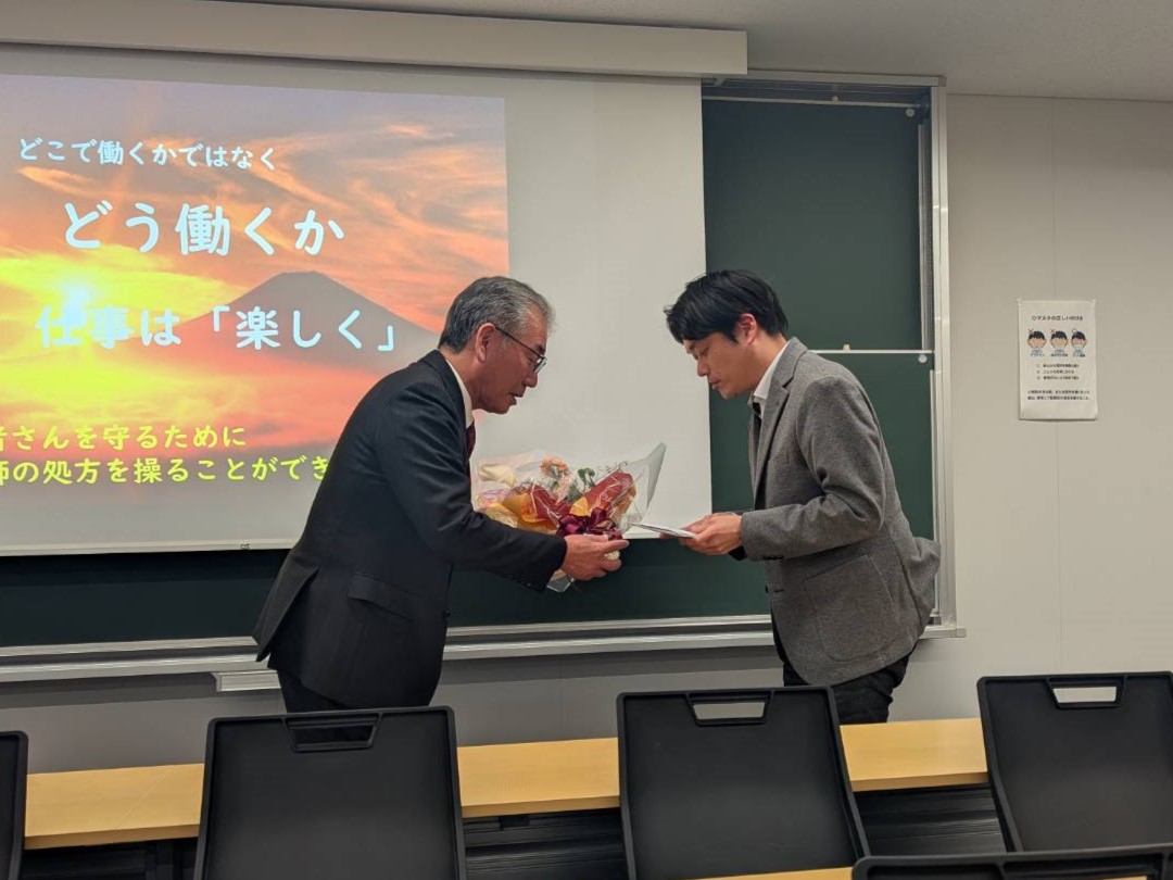三宅会グッドライフ病院薬剤科長 野口 悠高 先生からも花束をいただきました