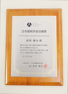 金尾教授は、「1983年に福山大学に奉職して以来、約200人もの薬学生、約25人の大学院生を医療人として世に送りだし、30余年間、彼らとともに研究をし、論文を書き、学会発表をするという生活を続けた結果、今回の受賞となりました」と話しています。