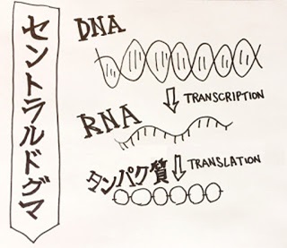 生物の遺伝情報は、親から受け継いでいるゲノムというDNA物質(核酸)に書き込まれています。そこにある情報は、RNAという物質に移された後に、最終的にタンパク質という物質に変換されることで機能を発揮しています。このような、DNA→RNA→タンパク質という遺伝情報の流れを『セントラルドグマ』とよびます。