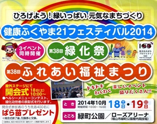 福山市社会福祉協議会の主催のもと、ひろげよう!緑いっぱい元気なまちづくりをテーマに “ 健康ふくやま21フェスティバル2014 ” が開催されました。 大学祭の同日、10月18日、19日の開催でした。