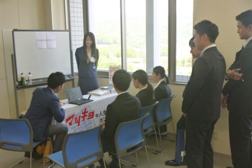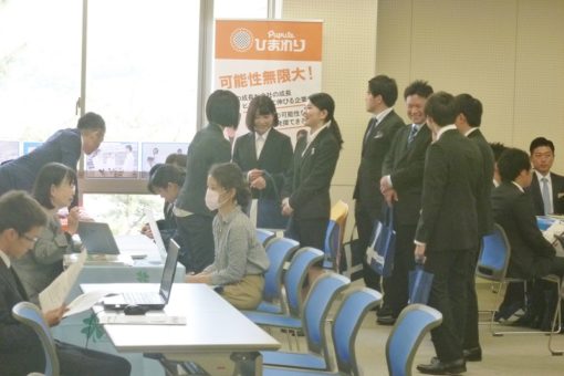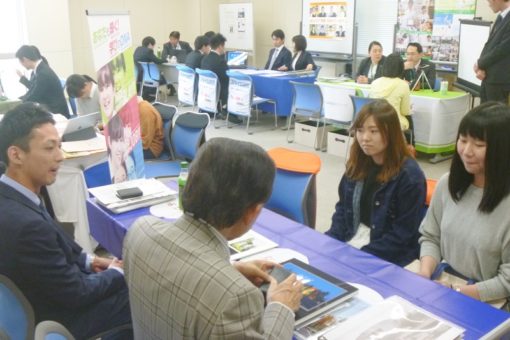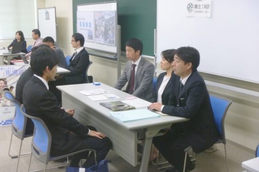 学生たちは各企業のブースを訪問し、直接採用担当者から、仕事内容や条件等に関する説明を受け、真剣な眼差しで聞き入っていました。得られた情報を進路志望先の選定に活用しようと、とても熱心に活動していました。
