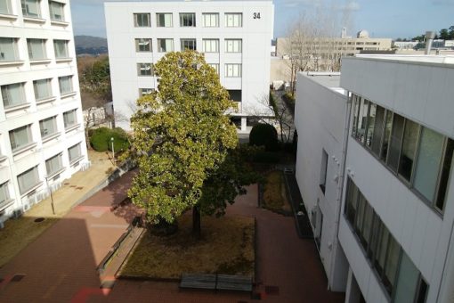 薬学部棟が取り囲む中庭を上から眺めてみました。人通りはほとんどありません。