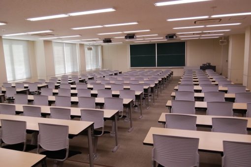 普段は学生であふれている医療薬学教育センター(34号館)の講義室ですが、誰もいません。