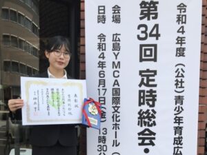 4. 青年表彰(青少年育成広島県会議)、吉岡利紗(6年)