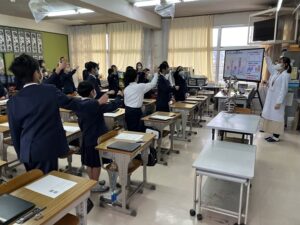 6. シュメツミッテルが府中学びフェスタで演舞 。セントラルドグマと遺伝子検査について啓発活動(松岡、3年)
