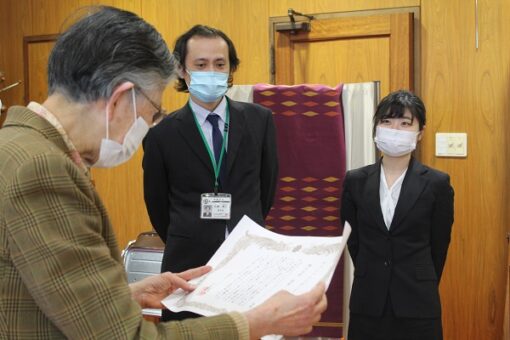 受賞の喜びを伝えるために、学長室を訪問しました。