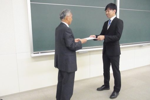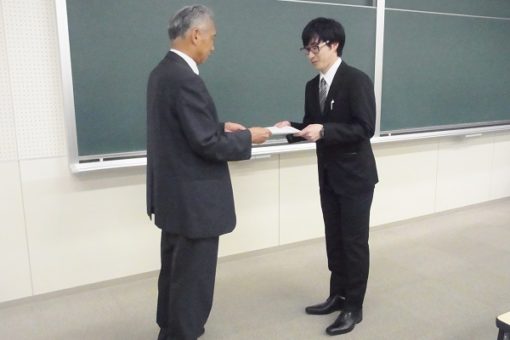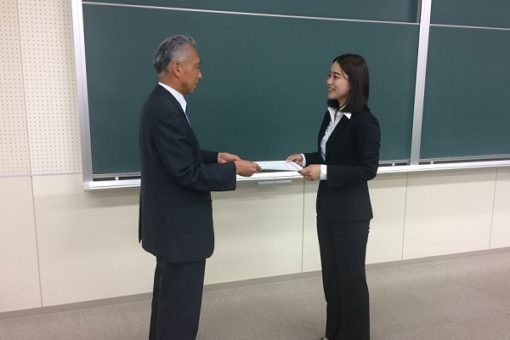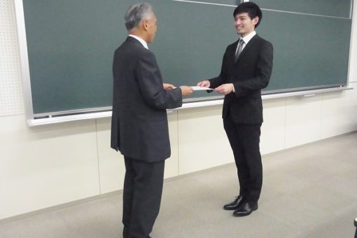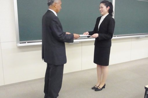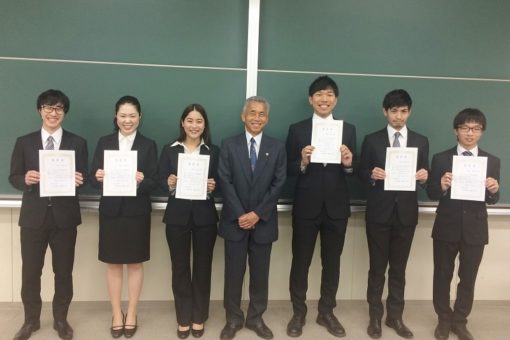 鶴田薬学部長から、以下6名の学生さんへ賞状が授与されました。