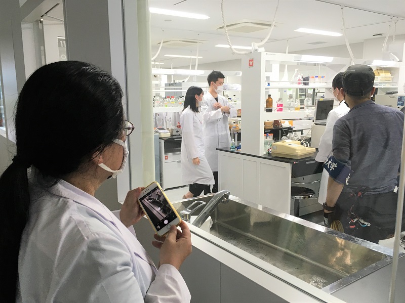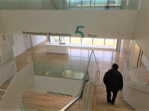 4~10階の薬学部研究室があるオープンラボエリアで実験しているイメージです。