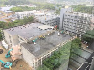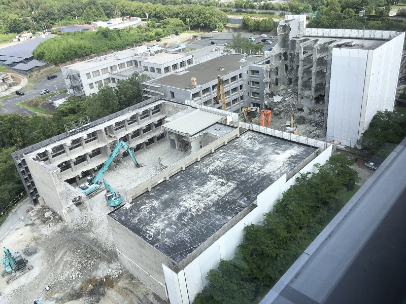一方、未来創造館のすぐ隣では、薬学部の旧校舎(10,11,12号館)の解体作業が進行しています。