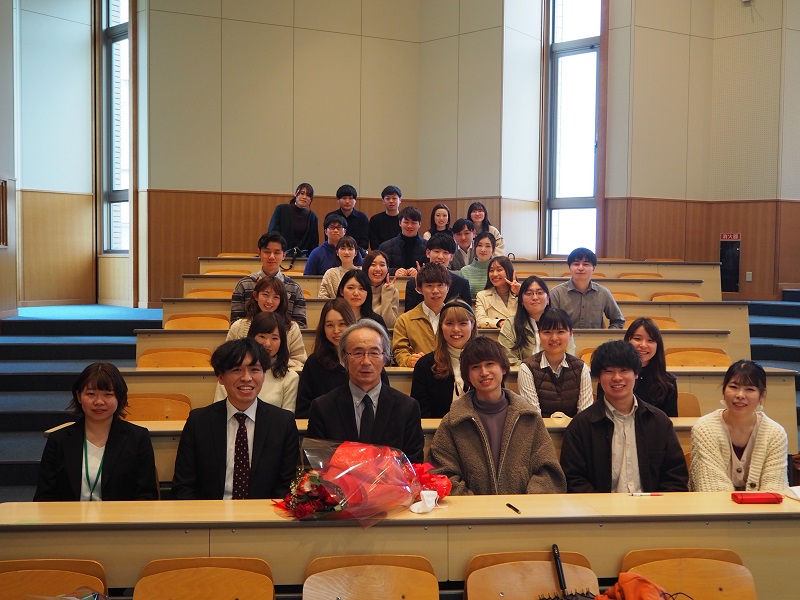 岡村信幸教授、並びに長崎信浩教授が、今年度をもって退職されます。それにともない、3月12日に両教授の最終講義が行われ、「漢方薬物解析学研究室」及び「実践医療薬学研究室」の所属学生と薬学部の教職員が聴講しました。