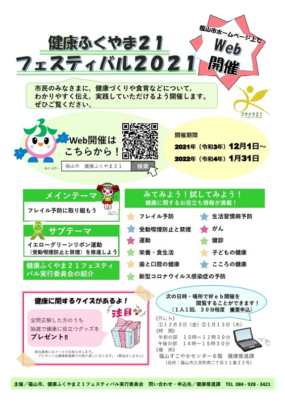 【イベント】健康ふくやま21フェスティバル2021への出展(開催期間:2022年12月1日~2022年1月31日)