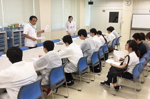 高校生は真剣に調剤体験をしていました。白衣を着た高校生は未来の自分を見たに違いありません。
