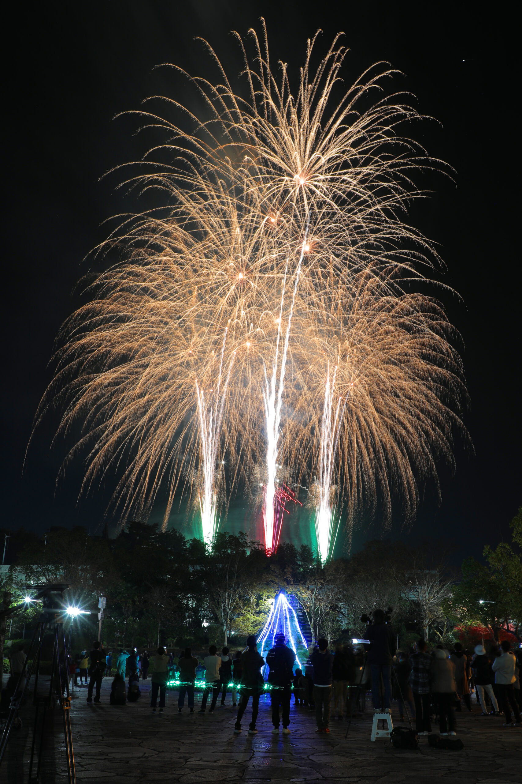 今年は点灯式当日に併せて「打上げ花火」も披露されました。未来創造館もきれいにライトアップされていつもと違う雰囲気です。