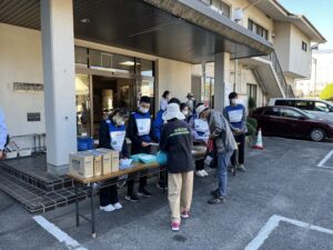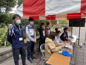 「神辺歴史巡りウォーキング」で受付と発熱チェックを担当している学生スタッフ