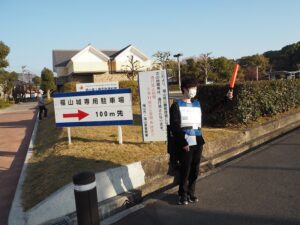 「福山城ロゲイニング」での駐車場誘導を担当した学生スタッフ