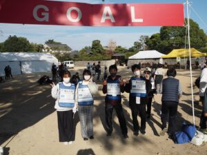 「福山城ロゲイニング」では、小嶋教授、竹田教授、中村講師がオブザーバーにつきました。ロゲイニングとは、マップやアプリケーションを用いてチェックポイントをできるだけ多く制限時間内にまわり、ポイントを競うスポーツです。総距離として13kmも歩いた学生さんグループもあり、積極的にイベントを楽しんでいました。