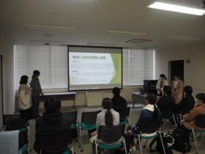 フィールドワークの学習成果報告会において、それぞれのグループで発表スライドに工夫がみられました。また、学生達からは地域の方々との交流が楽しかったとの意見が多く、積極性やコミュニケーション能力の高さが感じられました。