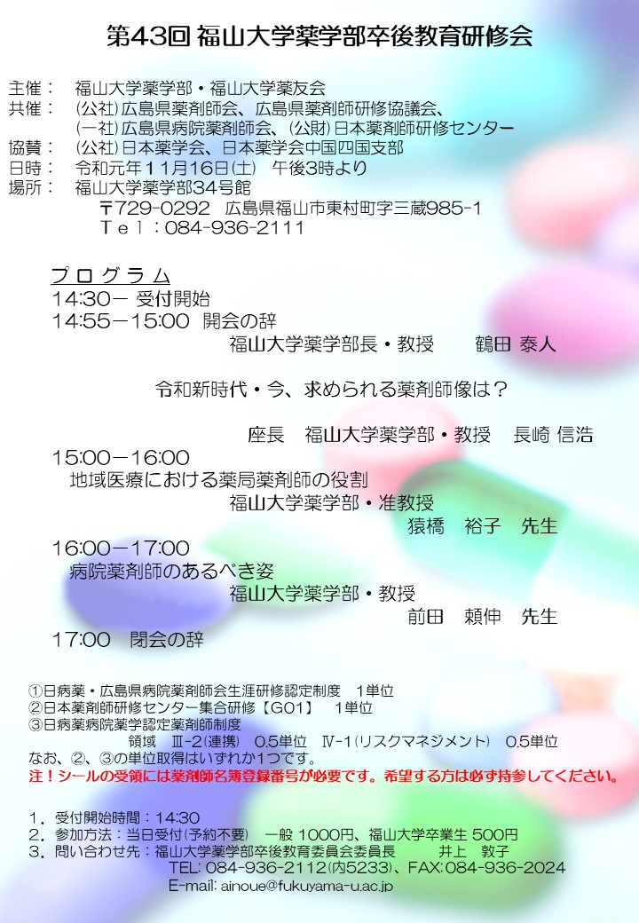 ■ 第43回 福山大学薬学部 卒後教育研修会
