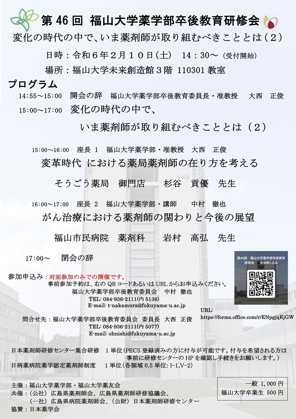 ■ 第46回 福山大学薬学部 卒後教育研修会