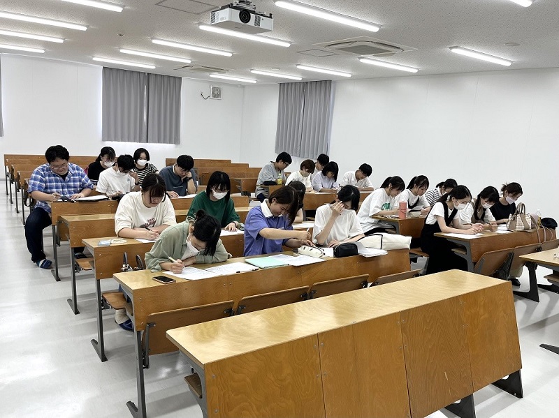 施設内の講義室に移動し、はじめに薬剤師国家試験の過去問も含めた遺伝子に関する演習問題を解きました。その後、1~3年生でグループ分けをした各班で教え合いました。