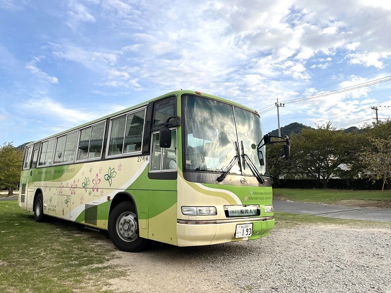 福山大学の松永バス停から大型バスで因島施設に向かい、9時半ごろに到着しました。