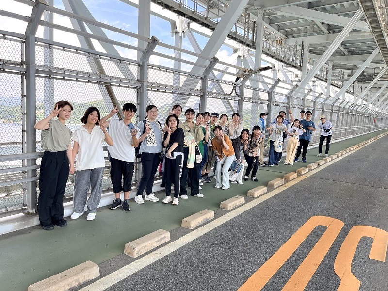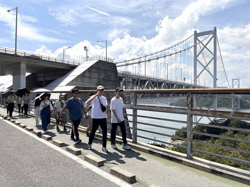 因島大橋の歩行者の専用道では、涼しい風に吹かれつつ、橋の上から見下ろす景色を楽しみました。