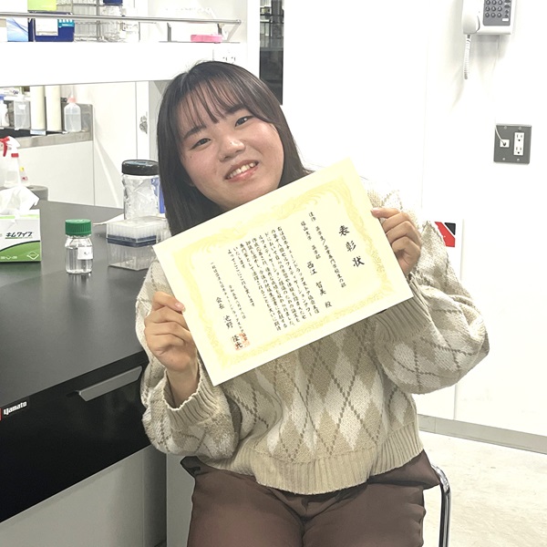 佳作を受賞した西江さん(病態生理・ゲノム機能学研究室所属、岡山県立井原高等学校出身)
