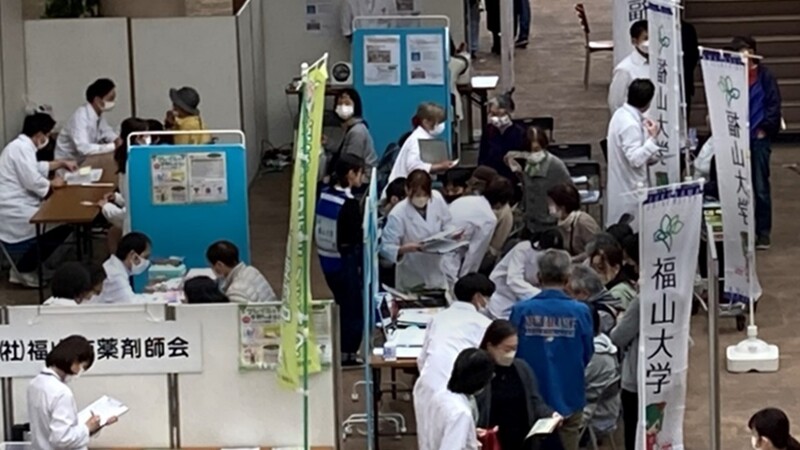 福山市民の健康まつりである「健康ふくやま21フェスティバル2023」が、11月12日(日)に4年ぶりに対面で開催されました。その時の様子について、薬学部杉原教授からの報告です。
