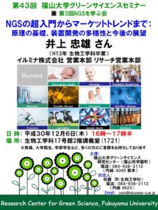 【講 師】井上忠雄 (イルミナ株式会社、H13生物工学科卒、博士(工学))