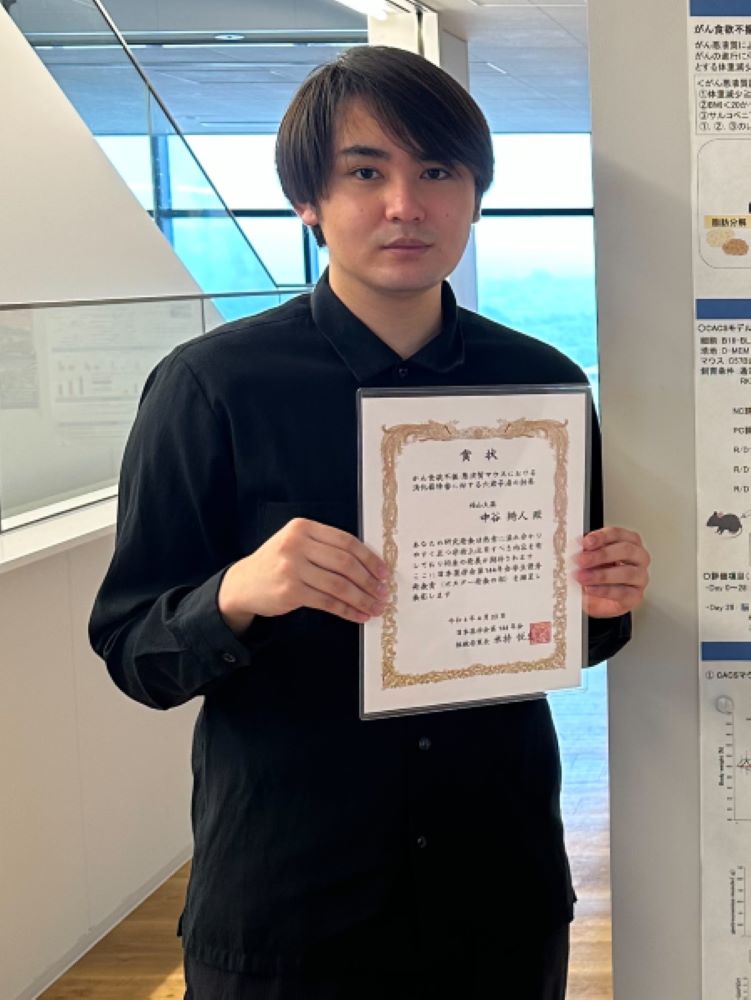 薬学部6年生の中谷綺人君(臨床薬効解析学研究室所属)が、3月に開催された日本薬学会第144年会(横浜)で、ポスター発表し、学生優秀発表賞を受賞しました。指導教員の佐藤雄己教授が報告します(投稿はブログメンバーの五郎丸です)。