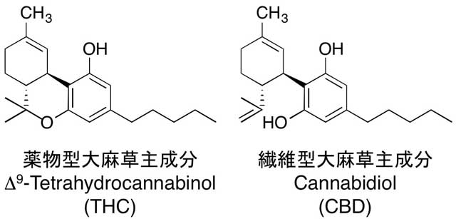 2) 世界で嗜好用大麻の合法化が進む中、「大麻成分は毒か薬か」の問いに答えるために、薬物型大麻草主成分テトラヒドロカンナビノール(Δ9-THC)や繊維型大麻草主成分カンナビジオール(CBD)といった大麻成分薬理・毒性研究を進めています。