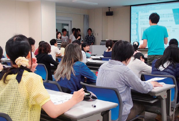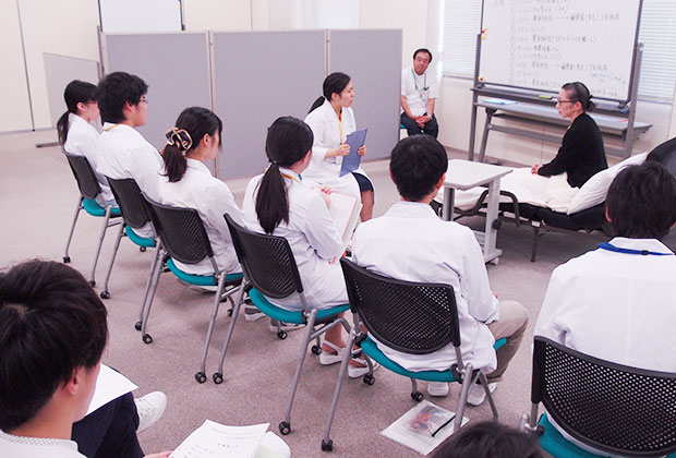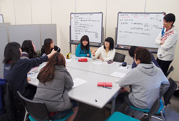 薬学部では、問題解決能力を養うためにproblem-based learning(PBL)形式の授業を1年次から6年次までの各学年で取り入れています。グループ討論と発表を繰り返すことにより、問題を発見してその問題に対する解答を学生自身で導き出していきます。