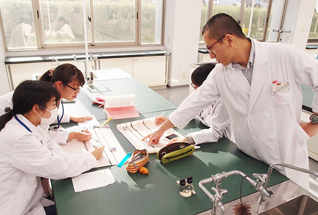薬学部では1年次の後期から実習が始まります。講義で学んだことを実際の実験で確かめることにより確実に知識や技術を身につけていきます。また実習で修得したさまざまな実験手技は、3年次以降に配属研究室で行う課題研究に活かされます。
