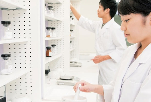 問題解決能力を持つ医療人になるため、「薬学」という学問・科学を深く探求する能力を養うことをめざし、学部学生全員が、3〜6年生の間、20の研究室に分属し、研究室教員の指導のもと、化学系、物理系、分析系、生物系、衛生系、薬理系、薬剤系、医療系の専門分野の研究に取り組みます。