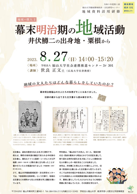 - ・シンポジウム「「福山義倉」の文化的ネットワークとその継承―菅茶山と井伏鱒二を軸に―」