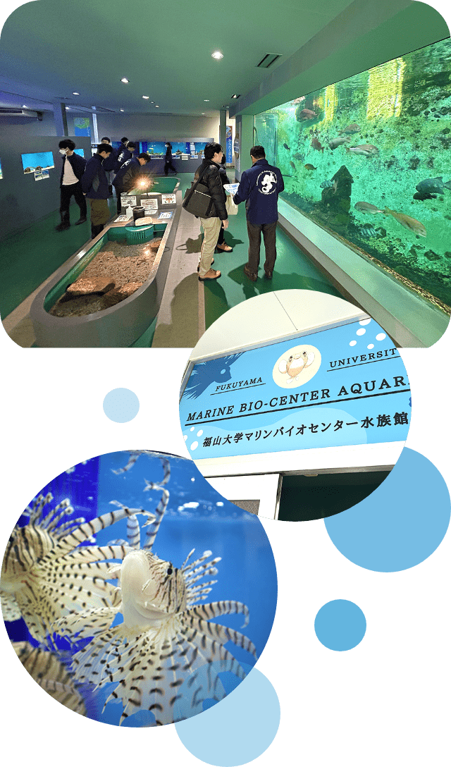 海洋生物学科の学生が運営しており、瀬戸内海にすむ海の生き物を間近で見ることができます。
