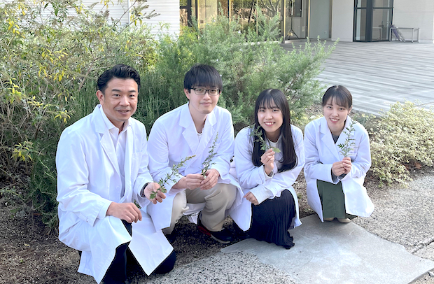 私たちの研究グループでは、植物と共生する微生物から薬の候補になる物質の研究を行っています。その微生物は、エンドファイトと呼ばれ、全ての植物に存在することからバラエティーが豊富で、様々な分野への応用が期待されています。私たちはこれまでに、福山大学の敷地内で自生しているヨモギから分離した共生微生物が、新型コロナウイルスの増殖を抑制することを明らかにしています。さらに、そのうち2種の微生物が新型コロナウイルスの3CLプロテアーゼを阻害していることを明らかにしました。また、次世代シークエンサーを用いた解析からその共生微生物は、ヨモギの茎の外皮に多く含まれることを発見しました。現在はその有効成分の研究を行っています。本成果は、研究雑誌で発表後、中国新聞に掲載されました。(https://www.47news.jp/9969705.html)